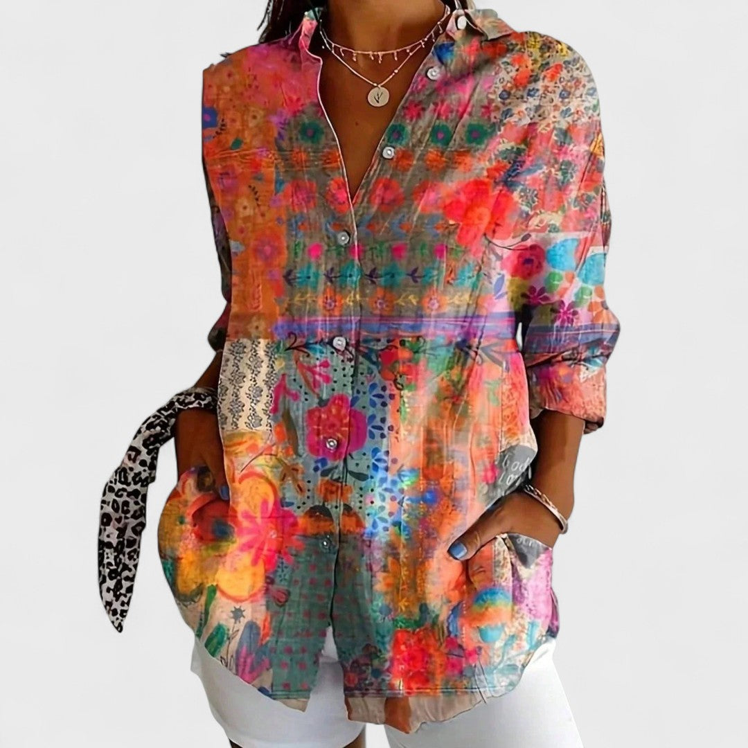 La camicetta Annika porta allegria e freschezza in ogni look. Con la sua stampa vivace dona uno stile unico che cattura l’attenzione, garantisce una vestibilità comoda ideale per l’uso quotidiano e offre una versatilità sorprendente che ti permette di passare da un outfit casual a uno elegante in pochi secondi. Perfetta per chi ama distinguersi con semplicità.